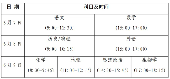全国统考和选择性考试于6月7、8、9日举行,具体安排如下: